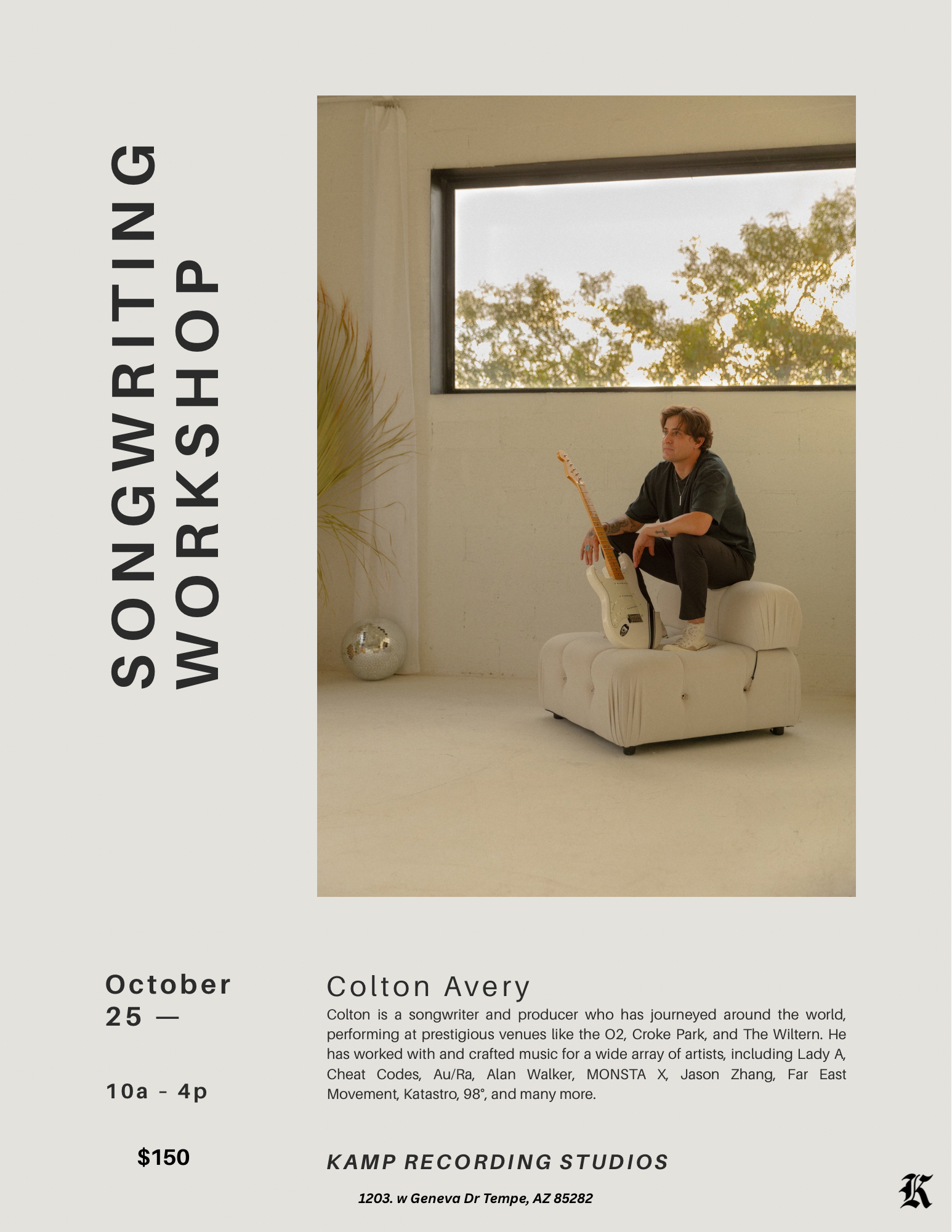 Categories: Select a Category Workshops Workshops Workshops | Songwriting Workshop w/ Colton Avery $150.00 Sold out
